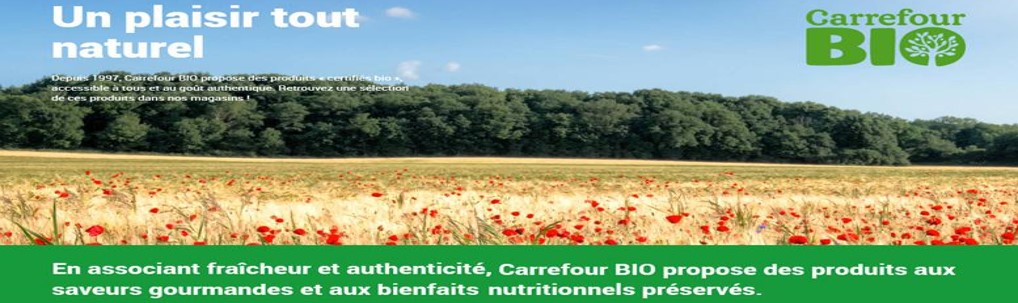- Les origines bio : Une transparence affichée sur la provenance de chacun de nos produits. Une production bio française garantie sur de nombreux produits du quotidien : les fruits et légumes frais, les viandes (bœuf, porc, veau, agneau), la volaille, les œufs et le lait